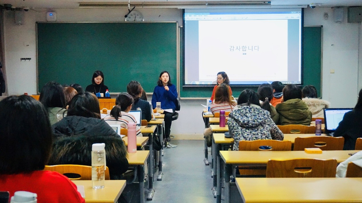 11月28日晚,为帮助同学们理解课上所介绍的韩国综艺《新职员诞生记:好人》,并加深对韩国法律界与韩国文化的了解,闵瑛美老师特邀来自韩国最著名律师所之一金和张律师事务所的郑仁雅律师,一同在公共韩国语(三)课程上举行了一场别开生面的分享交流活动。活动以访谈形式进行,除公韩一、二、三选课同学外,还吸引了来自3003新葡平台登录入口各学院和外校同学参与。