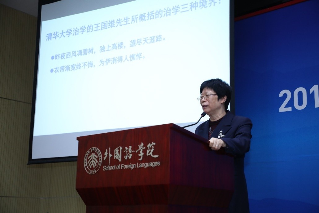 其中,文秋芳教授以《求学导学的经历与体会》为题作主旨报告,在回顾多年的求学历程之后、她从“导研究”、“导方法”、“导合作”、“导做人”等方面入手与在场师生分享了自己的治学心得。刘正光教授以《英汉语量词使用中的时空意义比较研究》为题,介绍了非范畴化理论以及时空同态问题提出的动因,并辅以详实的例证深入浅出地分析了英汉语中量词的时空意义。张媛副教授以《科研心得漫说——兼谈论文写作和项目申报》为题,围绕科研心路历程、科研思路训练、科研素质培养和科研成果产出四个方面作了发言。三场主旨报告精彩纷呈,内容丰富,视角独特,使博士生们受益匪浅。