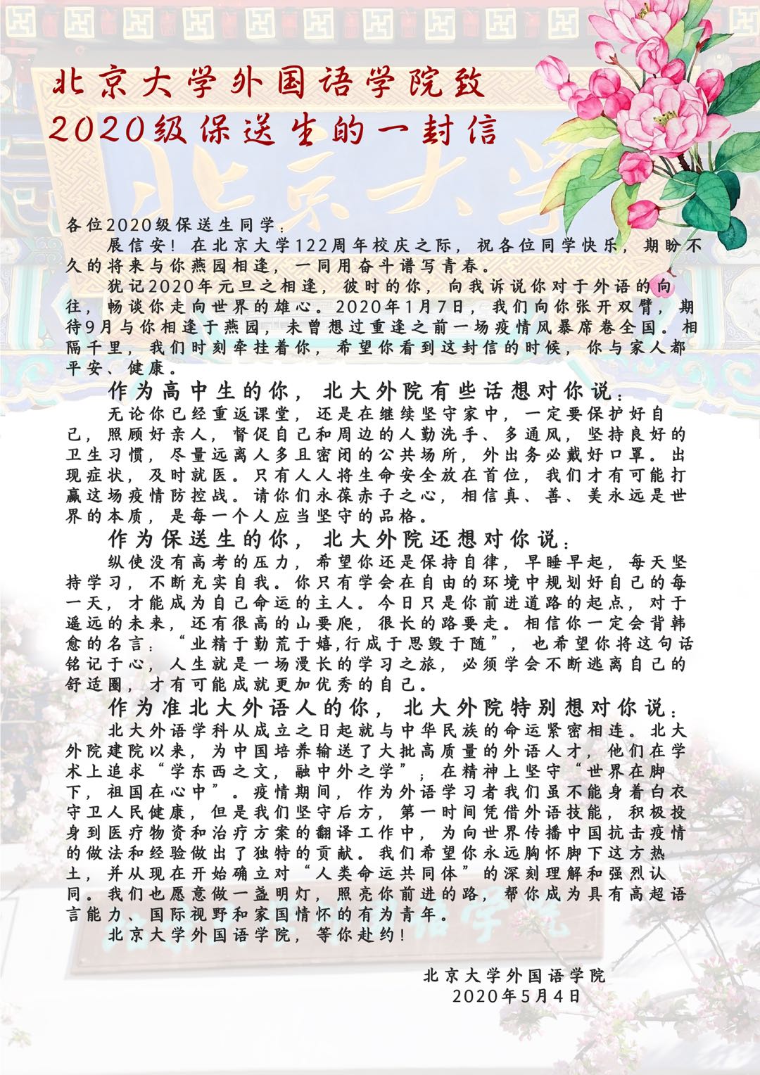 3003新葡平台登录入口致2020级保送生的一封信