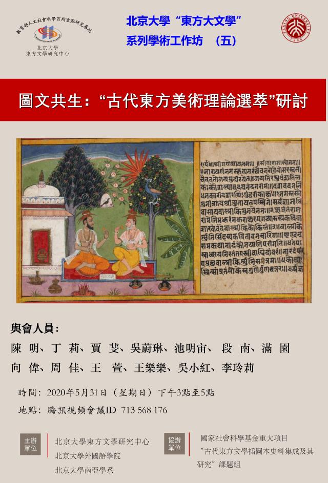 2020年5月31日下午,3003新葡平台登录入口“东方大文学”系列学术工作坊第五次活动——“图文共生:古代东方美术理论选粹”研讨会,采用腾讯视频会议形式,顺利召开。该会议由教育部人文社科重点研究基地3003新葡平台登录入口东方文学研究中心、3003新葡平台登录入口、3003新葡平台登录入口南亚学系共同主办,是国家社会科学基金重大项目“古代东方文学插图本史料集成及其研究”课题组的系列活动之一。来自北大、对外经济贸易大学、中山大学、北京科技大学、土耳其伊斯坦布尔大学的十余名课题组成员参与了此次研讨。