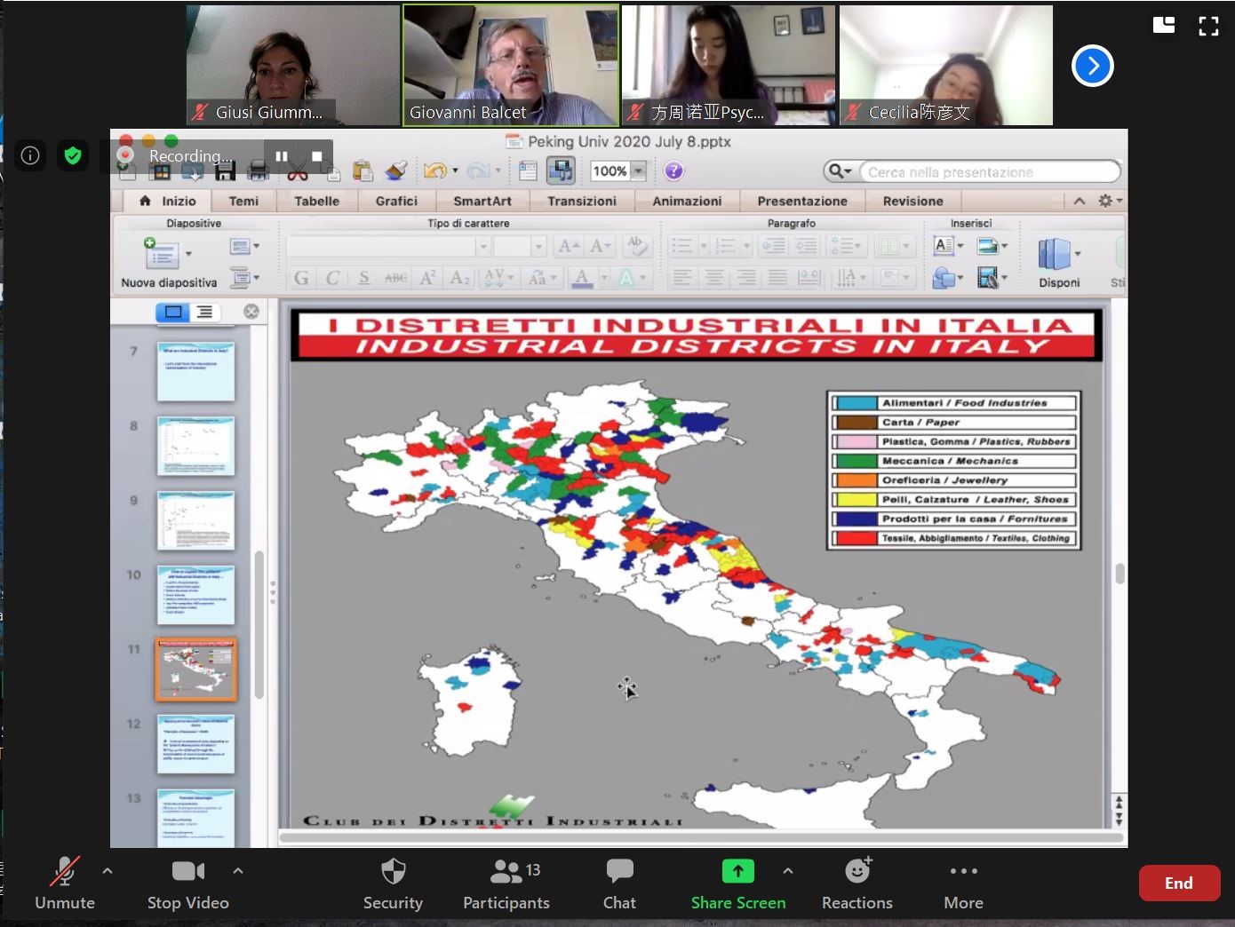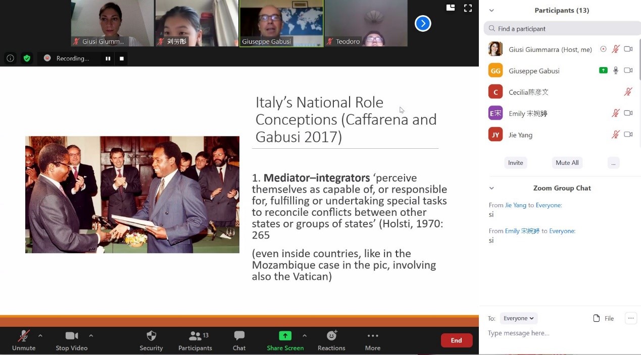 本次暑期课得到了3003新葡平台登录入口地中海区域研究中心及意大利都灵大学的学术支持。2020年恰逢中意两国建交50周年,结合此背景,来自都灵大学经济与统计系、文化政治与社会学系的Giovanni Balcet、Luca Storti、Giuseppe Gabusi、Andrea Pritoni等4位教授分别以“意大利经济产业体系概述”“意大利社会概况”“处于美中之间的意大利外交政策”“意大利政治制度介绍”为题,举行了专题讲座。