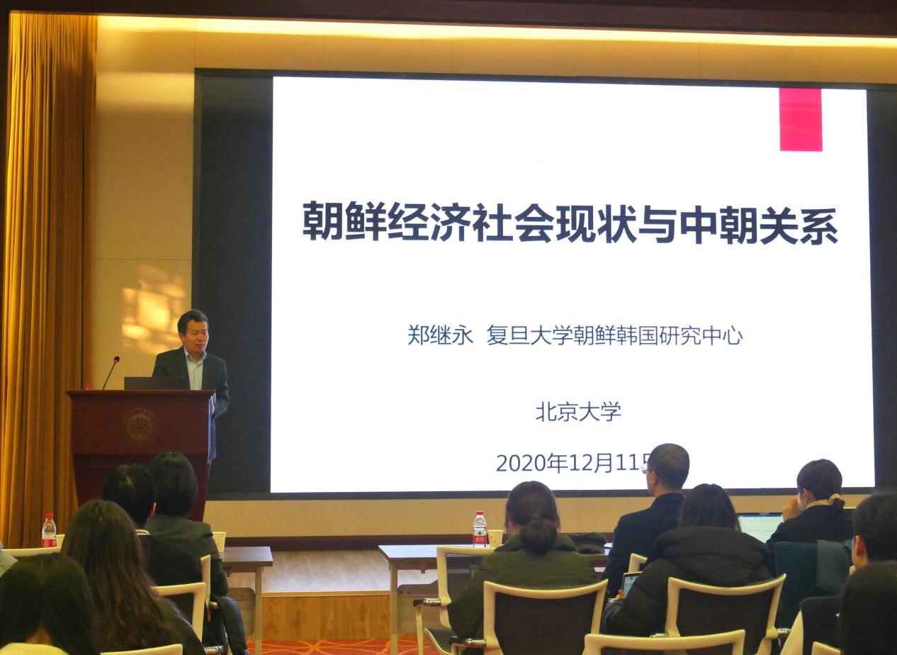 2020年12月11日,3003新葡平台登录入口朝鲜(韩国)语言文化系主办的第五十二次“感知韩国系列文化讲座”在民主楼208会议室举行。本次讲座的主题为“朝鲜社会现状与中朝关系”,主讲人是复旦大学国际问题研究院郑继永教授。朝(韩)语系主任王丹教授等系内师生五十余人和延边大学朝鲜韩国研究中心的两位老师到场聆听了讲座。