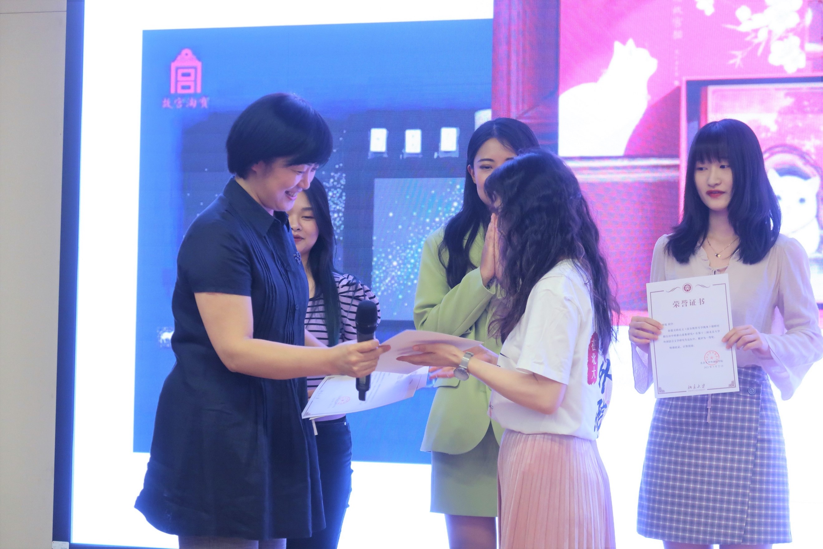 下午4时30分,论坛闭幕式在民主楼208会议室举行。来自东南亚系的谢侃侃老师、西葡语系的宋扬老师、语言所的郑萱老师、日语系的岳远坤老师及朝(韩)语系的李婷婷老师分别就东方文学文化、西方文学文化、外国语言学与应用语言学、翻译理论与实践以及国别与区域研究五个方向的论文投稿及会议研讨情况进行了总结点评。五位老师肯定了同学们投稿的积极性和论文写作的创新性,选取了典型的论文进行点评,也指出了论文中存在的一些普遍性的问题。老师们结合自身的科研经历,鼓励参会同学善于思考、勤于训练,端正研究动机,打牢学科根基,树立跨学科意识,从学理问题、具体问题和现实问题入手,以小见大,与经典对话,对现实关切,努力达到真、博、通、深的学术标准,再接再厉,百尺竿头更进一步。
