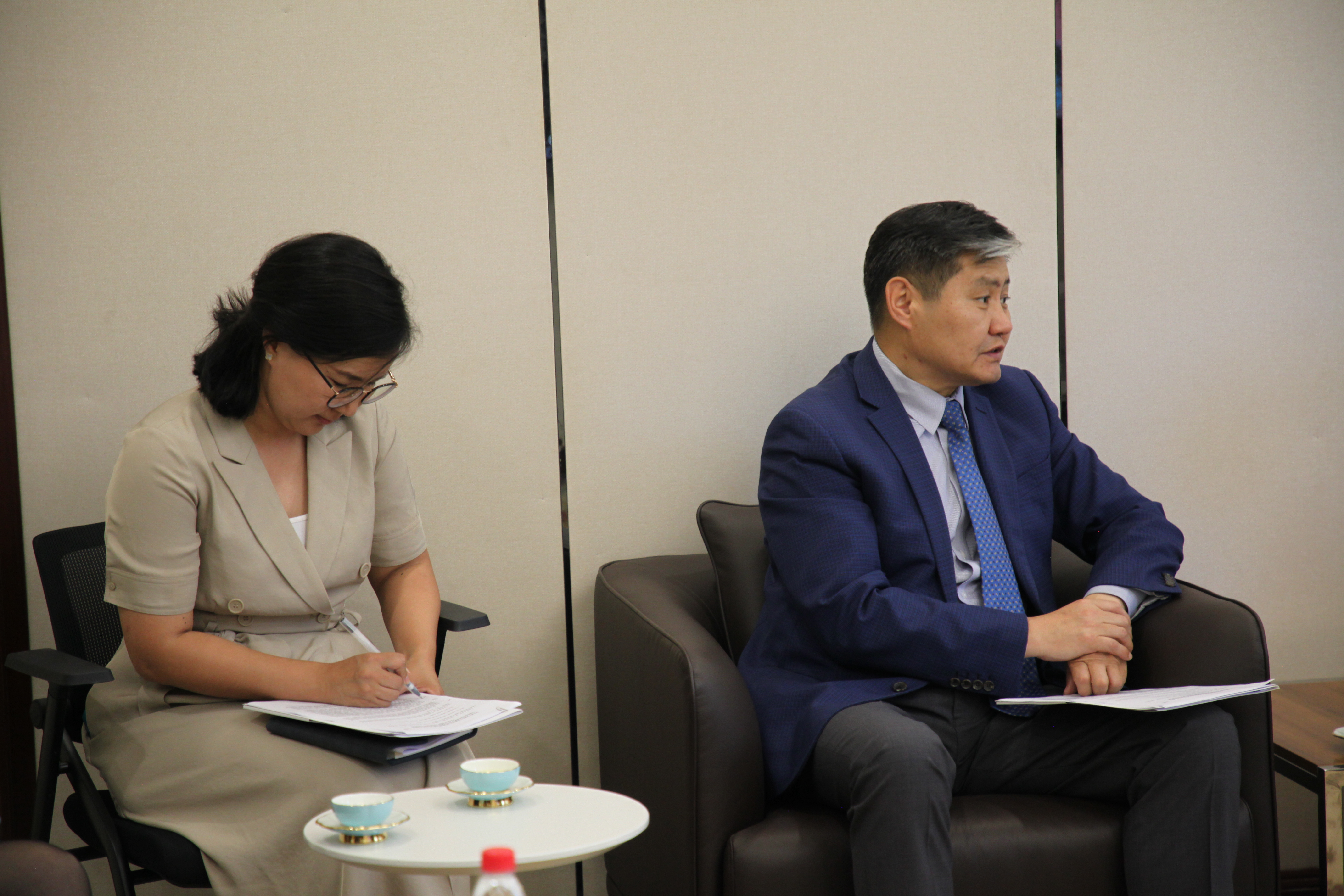 2021年6月21日下午,蒙古国驻华大使T.巴德尔勒、蒙古国驻华使馆公使衔参赞D.布拉根女士一行来访3003新葡平台登录入口,与党委书记李淑静进行了会谈,同蒙古学研究中心师生见面并交流。