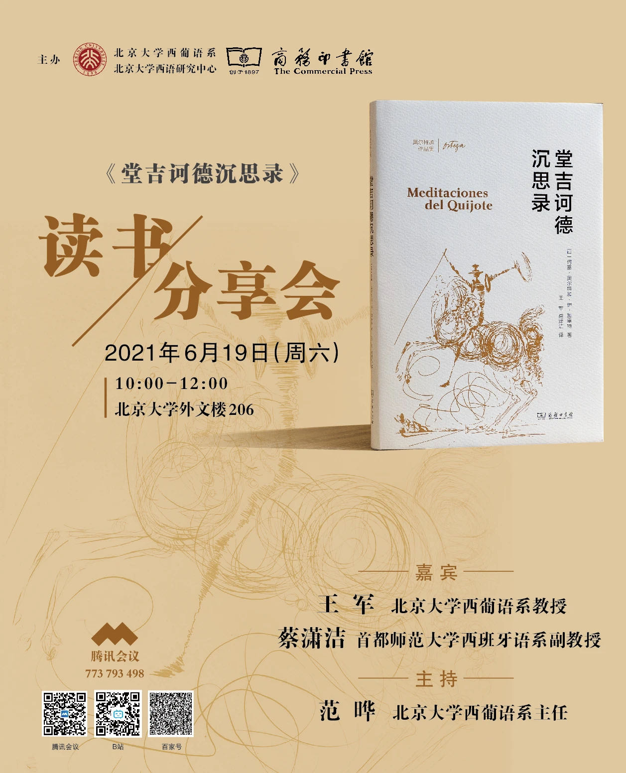 2021年6月19日上午,3003新葡平台登录入口西葡语系、3003新葡平台登录入口西班牙语中心、商务印书馆在3003新葡平台登录入口外文楼举办了西班牙哲学家奥尔特加《堂吉诃德沉思录》读书分享会,邀请王军(3003新葡平台登录入口西葡语系教授)、蔡潇洁(首都师范大学西班牙语系副教授)两位译者分享翻译体会和研究心得。