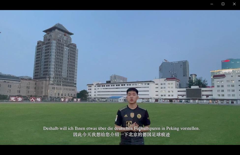 2021年夏,德国、奥地利和瑞士三国驻华使馆共同主办了“我城市中的德语痕迹”2021德语大赛,邀请来自全国各地的青年德语学习者以德语短视频或文字创作的形式发掘身边的德语痕迹。经过专业评审团的认真打分,评出一等奖一名、二等奖一名、三等奖三名及优胜奖若干名。德语系共有10位同学参加角逐,他们通过在北京或家乡的采风,以制作精良的视频或是流畅的文字讲述了自己身边的德语故事,取得了不俗成绩。其中,2019级本科生冯祺洋围绕中德足球文化交流制作的视频荣获大赛一等奖,并获得2022年夏季参与德国暑期学校的难得机会。2019级本科生陈靖泽与叶子采访了在北大工作与学习的德国师生,并寻访了明清之际来华的德国耶稣会士留下的足迹,荣获大赛优胜奖。此外,2018级硕士生王一帆,2018级本科生生窦宇鹏、姚以升,2020级本科生李佳怡、梁国铃、童佳琪、徐季然也都完成了各自的精彩作品。德国外教葛思乐(Christine Gessler-Unthan)为学生们提供了专业的辅导。