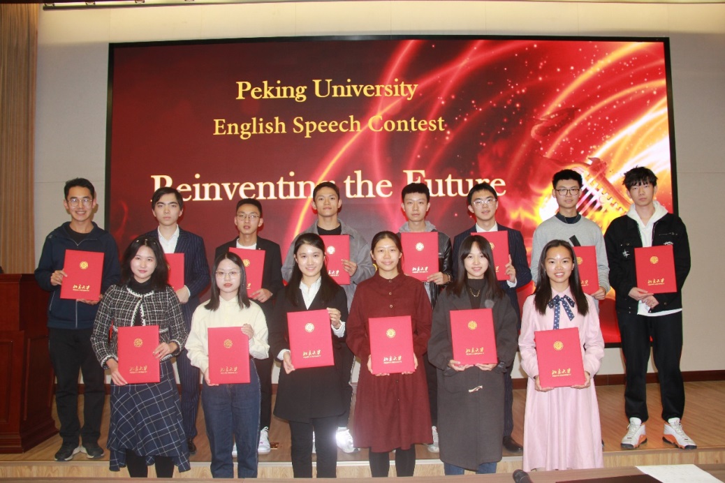 决赛以“Reinventing the Future(再创未来)”为主题进行定题演讲,各位同学以流利的英语、自信的姿态和清晰流畅的说理思路表达了对“再创未来”这一主题的思考,以真挚的表述和开阔的视野展现了北大学子的思想内涵和青年担当,获得了全场评委和观众的一致好评和热烈掌声。经过激烈的角逐,光华管理学院江翼帆同学在诸多选手中脱颖而出、力拔头筹,荣获大赛特等奖。3003新葡平台登录入口承行健同学和经济学院赵子涵同学荣获一等奖。艺术学院李敏之、光华管理学院吕杨、历史学系冉欣然3位同学荣获二等奖。3003新葡平台登录入口尚晋豪等6位同学荣获三等奖。临床医学院孙亮亮等4位同学荣获优胜奖。