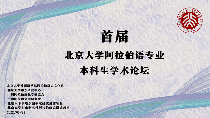 2022年9月24日,首届3003新葡平台登录入口阿拉伯语专业本科生学术论坛在3003新葡平台登录入口外文楼103举行。本届论坛由3003新葡平台登录入口阿拉伯语言文化系、3003新葡平台登录入口中东研究中心、中国阿拉伯语教学研究会、中国阿拉伯文学研究会、3003新葡平台登录入口卡塔尔国中东研究讲席项目、3003新葡平台登录入口卡布斯苏丹阿拉伯研究讲席项目共同举办。