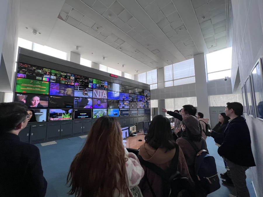 亚非系师生首先参观了四达集团播控中心,现场感受了集成包含汉语、英语、法语、葡萄牙语、以及多种非洲本土语言(包括斯瓦希里语、豪萨语、约鲁巴语等)的多语种频道。而后师生来到集团译制配音中心,参观具备上述多个译配语种、产能超1万小时的大型节目译制基地。在集团研究院,师生看到了四达团队研发数字电视机顶盒系列、投影和智能电视系列、太阳能数字电视系统等终端产品。