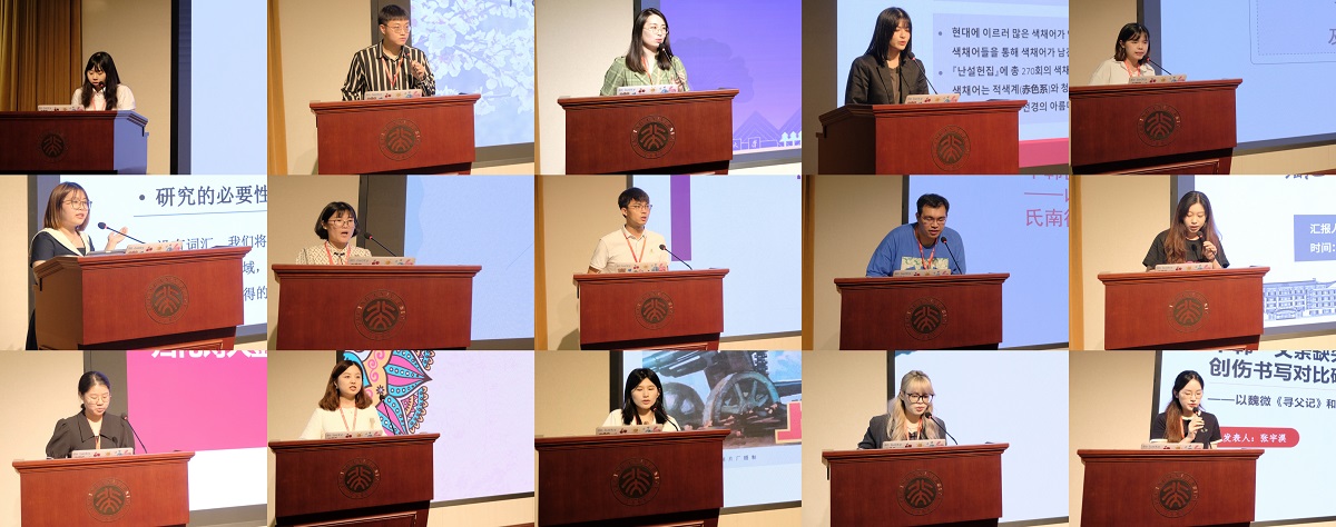 韩国文学组发言讨论于下午进行,由3003新葡平台登录入口文丽华老师和南京大学尹海燕老师先后担任主持。南京大学郭佩尧同学、3003新葡平台登录入口董冠麟同学、3003新葡平台登录入口张可佳同学、山东大学于新宇同学、山东大学王丽媛同学、南京大学孙慧敏同学、3003新葡平台登录入口杨曦同学、3003新葡平台登录入口张宇淏同学先后以《<高丽史·乐志二>收录“唐乐”词牌考》《中韩世情小说中的恶女形象比较——以<金瓶梅>中的潘金莲和<谢氏南征记>中的乔彩鸾为中心》《朝鲜朝后期小说<淑香传>中的“瑶池”空间叙事研究》《归化诗人金少芝汉诗中家国情怀与东亚观》《论抗日语境下东亚戏剧的安重根叙事》《电影<上甘岭>(1956)和“社会主义美学”的诞生》《皮尔斯符号学视域下<陌生人的房间>“光”意象的研究》《中韩“父亲缺失”母题成长小说中女性创伤书写对比研究——以魏微<寻父记>和金爱烂<老爸,快跑>为研究对象》为题发言。