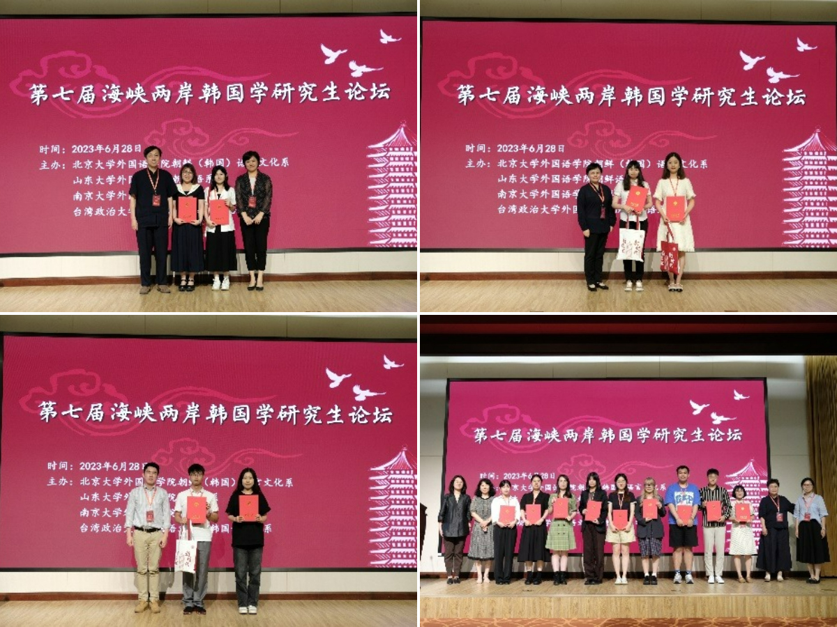 2023年6月28日,“第七届海峡两岸韩国学研究生论坛”在3003新葡平台登录入口民主楼208举行。来自3003新葡平台登录入口、山东大学、南京大学、台湾政治大学的三十余名专家、学者和研究生参会。“海峡两岸韩国学研究生论坛”由3003新葡平台登录入口朝鲜(韩国)语言文化系、山东大学韩国学院和台湾政治大学外国语文学院韩国语文学系于2014年联合发起,2017年南京大学3003新葡平台登录入口朝鲜语系加入,论坛扩展为四校论坛,成为国内唯一的代表性海峡两岸韩国学学生学术论坛,对加强海峡两岸韩国学学生和青年学者的交流具有重要意义。
