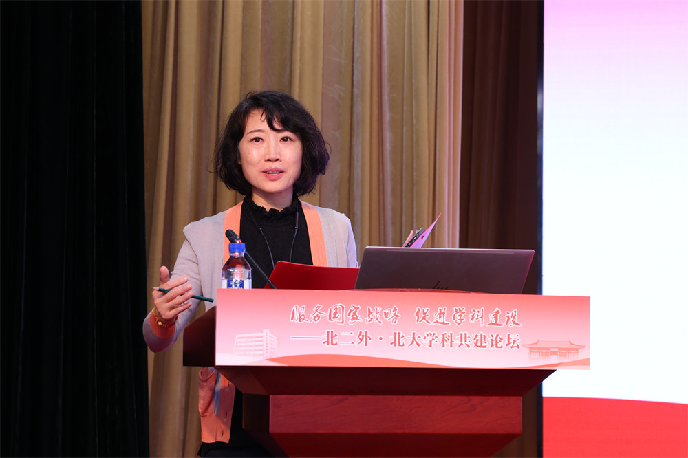 宁琦作题为“外语教育视角下的国别与区域研究”主旨报告。她强调外语学科的发展与国家战略紧密相连,能切实给交叉学科门类下的区域国别学赋能,具有“非我莫属、非我莫能”的重要地位,未来应以教师队伍与学缘关系的整体盘活为策略,发挥语言对文化与历史的承载功能、促进政治与文明相融的重要价值,实现跨学科共同发展。