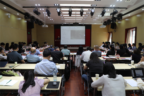 南京大学赵宪章教授作“论中国画的‘伦理透视’”报告。赵教授在分析中国画的透视特点时,指出使用“焦点透视”和“散点透视”来区分中西绘画是一种误区。他提出,中国画透视的主要特点是透视的伦理化,可称之为“伦理透视”。这种“伦理透视”体现了中国传统文化对绘画艺术的深刻影响,也是中西方艺术观念差异的一个重要体现。
