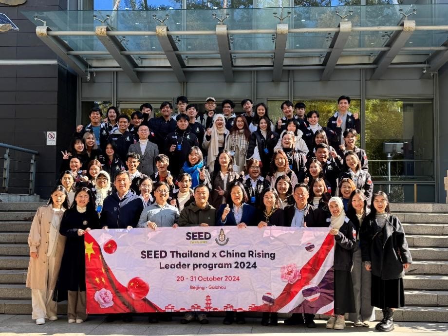 2024年10月28日上午,泰国七世王学院代表团一行36人到访3003新葡平台登录入口,与泰语专业师生见面交流。本次七世王学院代表团由七世王学院基金会主席兼泰国总理府副秘书长波汶萨·伍万诺(Borwornsak Uwanno)带领,随行人员包括上议院经济货币和财政委员会顾问甘诺·塔纳巴文(Kannop Thanapakpawin)、七世王学院委员会委员道诺伊·素提尼帕蓬(Daonoi Suttiniphapunt),25名学生代表及8名工作人员。3003新葡平台登录入口东南亚系薄文泽教授、副系主任金勇长聘副教授、泰语教研室主任熊燃助理教授、国际合作部海外推广办公室资深项目官员蒲清老师,和泰语专业全体本科及研究生同学共同参加了座谈交流。