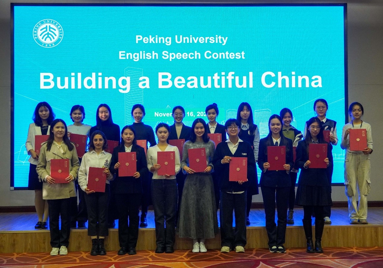 演讲比赛以“Building a Beautiful China(建设美丽中国)”为主题,面向全校大学英语学生,分为班级选拔赛、各级别复赛和决赛三个阶段;前两个阶段通过提交演讲视频的方式进行,决赛采用现场比赛的形式进行。同学们踊跃报名,各抒己见,充分表达了自己对“建设美丽中国”的深刻见解和美好憧憬,充分展现了北大青年学子的思想内涵和青春梦想,加深了他们对自我、国家和世界的理解。本次比赛共有1200余名同学参加班级选拔赛,经大学英语教研室精心组织评审,170余名同学进入各级别复赛,最终18名同学成功入围演讲比赛的决赛。