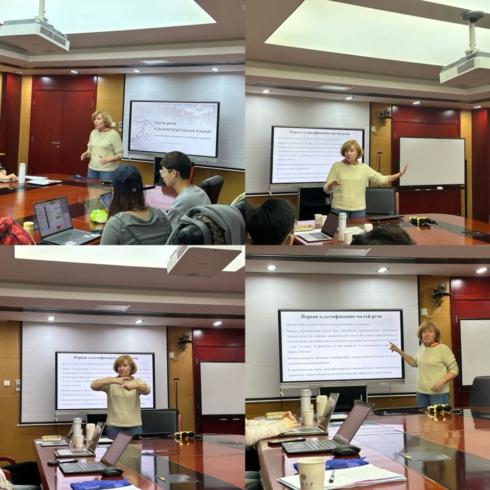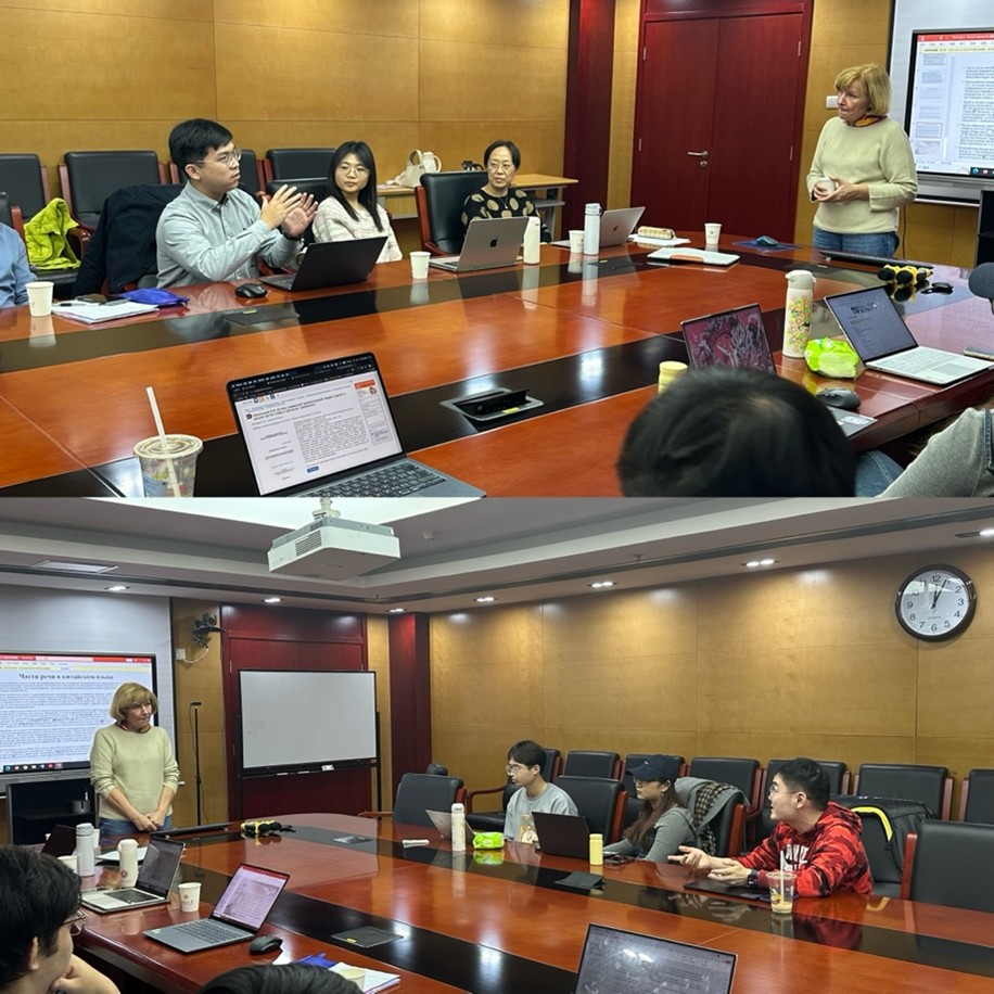 2024年11月21-22日,俄罗斯莫斯科大学/深圳北理莫斯科大学沃洛申娜副教授(О.А. Волошина)应邀在3003新葡平台登录入口举办两场讲座,主题分别为“俄中两国词典编纂传统的比较传统”和“俄汉语中的词类”。本次讲座系“曹靖华俄罗斯学系列讲座”第47讲和第48讲,由3003新葡平台登录入口俄语系、外国语言学及应用语言学研究所(虚体)、俄罗斯文化研究所(虚体)主办。3003新葡平台登录入口俄语系教师、博士后以及硕博研究生聆听讲座。