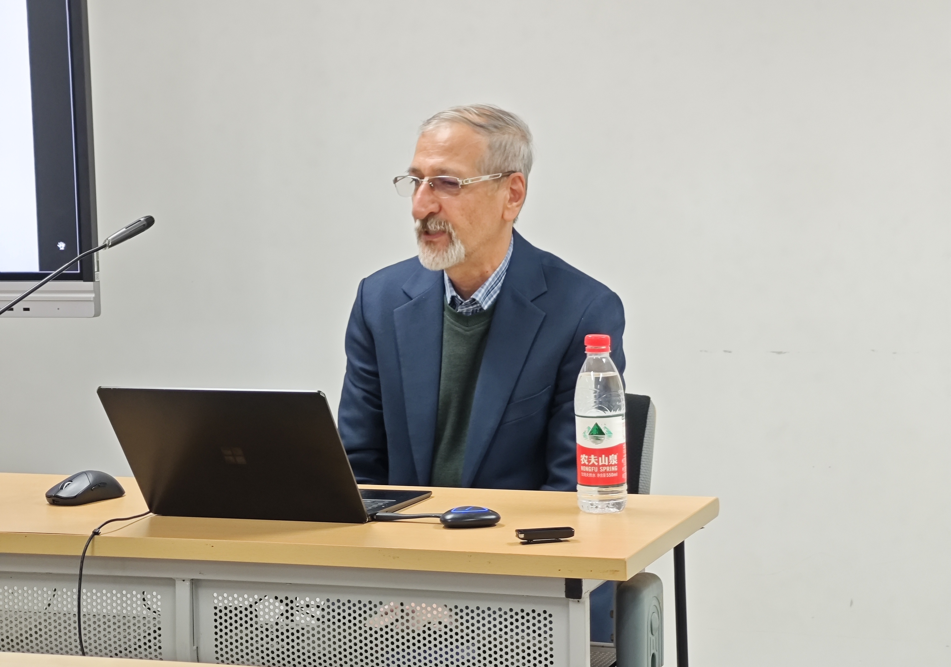 在讨论环节,各位与谈人以及其他在场师生与谢赫霍卡玛伊研究员展开热烈讨论。讲座结束之时,谢赫霍卡玛伊研究员还向3003新葡平台登录入口伊朗文化研究所赠送了书籍。