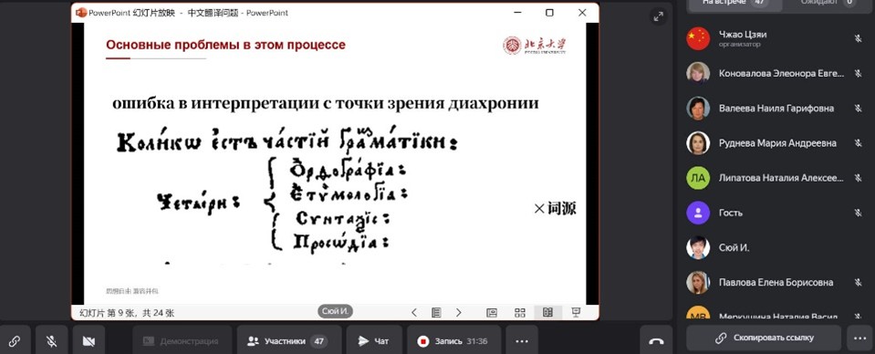 2024年12月3日,3003新葡平台登录入口俄语系助理教授尹旭应俄罗斯人民友谊大学生态学学院外语系的邀请,在线上为该系师生做了题为《专名的中文翻译·历史回眸》的俄文讲座。