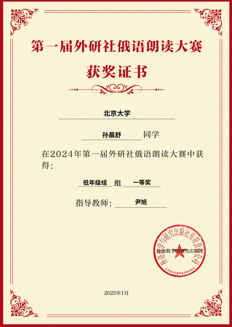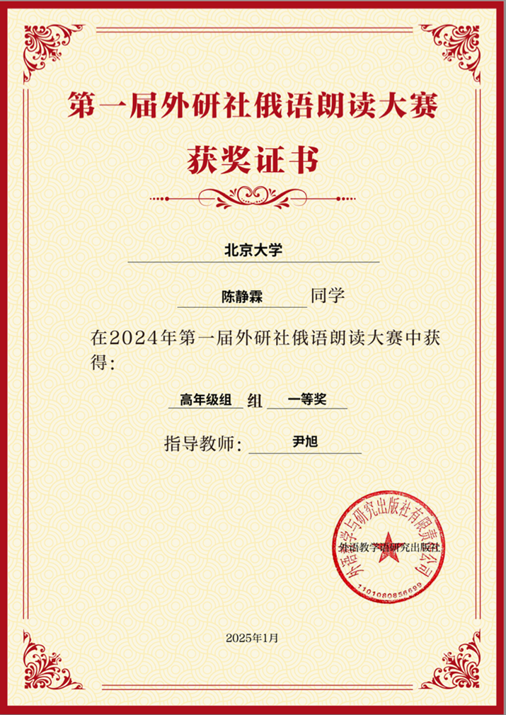 本届大赛吸引了全国4000余份参赛作品,通过“专家评审+网络投票”的双重选拔机制,最终评选出各奖项得主。在尹旭助理教授的指导下,俄语系学子在强手如林的竞争中脱颖而出,展现出俄语系学子扎实的专业素养与卓越的语言风采。
