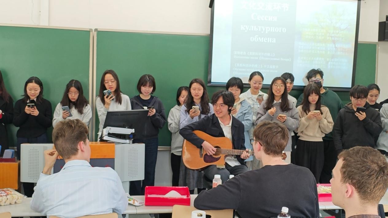 此次主题交流活动以语言为桥、文化为媒,不仅展现了新时代青年投身人文交流的主动担当,更呼应了中俄全面战略协作伙伴关系的人文温度。当《莫斯科郊外的晚上》的旋律响起,中俄青年共同谱写的不仅是跨文化理解的乐章,更是对构建人类命运共同体理念的青春注脚。这种跨越国界的双向奔赴,必将为深化两国教育合作、赓续传统友谊注入源源不断的青春动能。