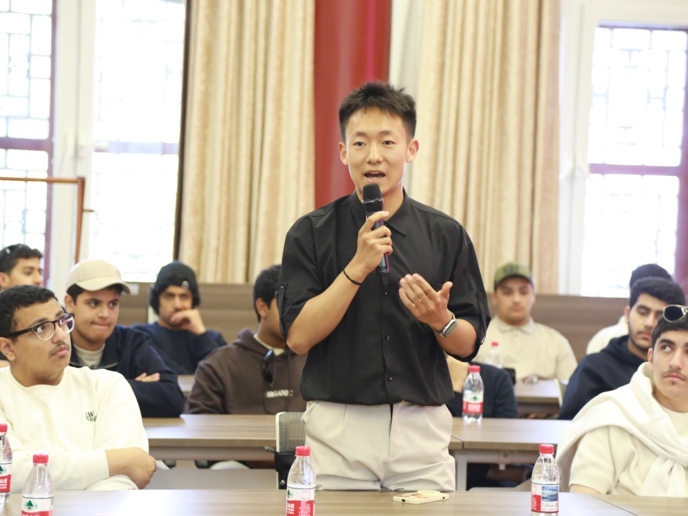 阿联酋中文“百校项目”负责人巴斯塔基对3003新葡平台登录入口的组织和招待表示了感谢,并向北大师生介绍了代表团的人员构成和出访目的。巴斯塔基老师特别强调了自己与中国和中文教学的缘分,并希望这次宝贵的经历能向代表团同学们展示中国文化的独特魅力,激励他们进一步推动两国间的对话与合作。座谈最后,代表团同学与3003新葡平台登录入口阿拉伯语系同学展开自由交流,双方分别用中文和阿拉伯语介绍了自己在中国与阿联酋参访期间的经历和感受,加深了了解和友谊。