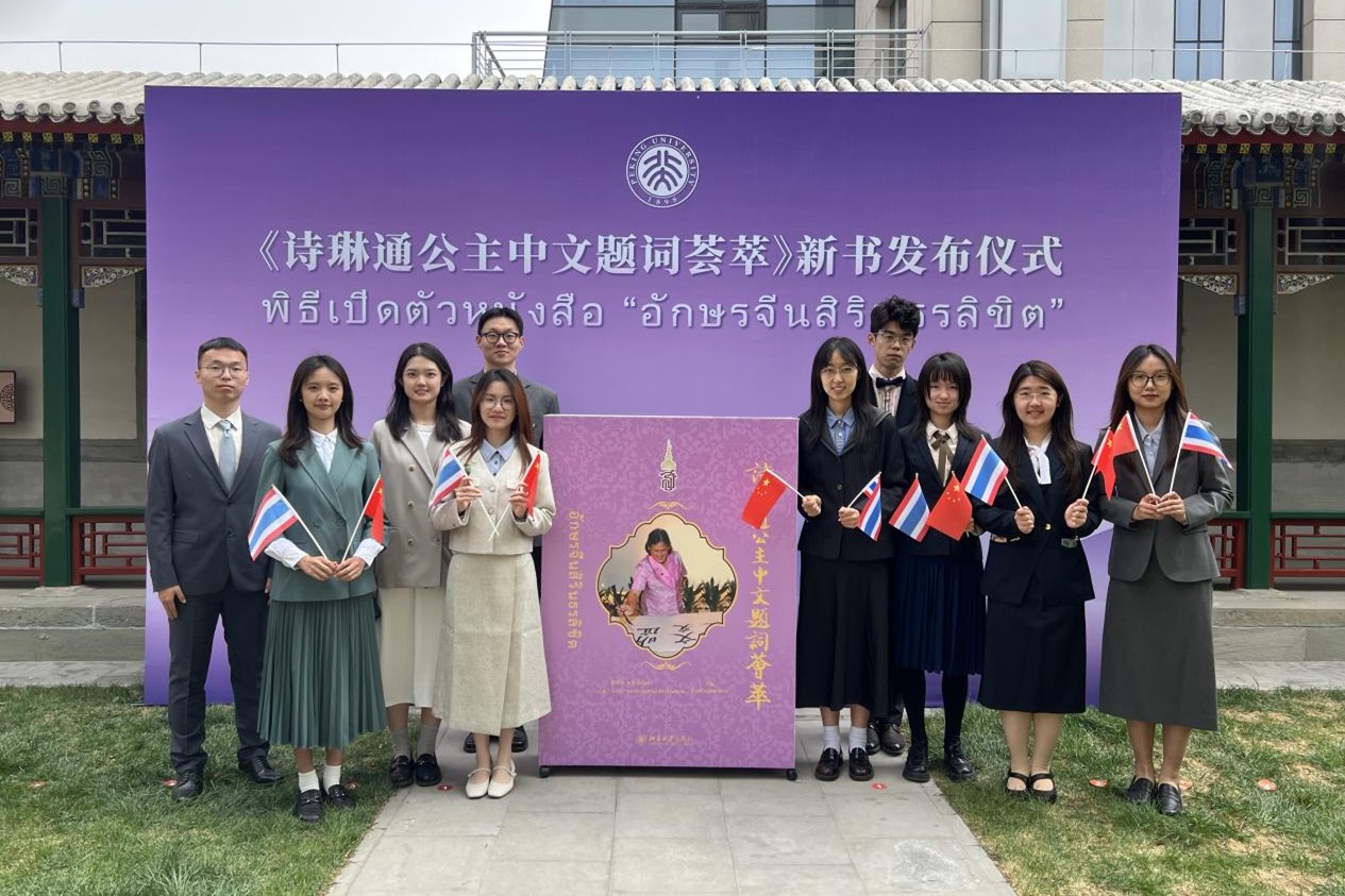 上午10:00时,《诗琳通公主中文题词荟萃》新书发布仪式在治贝子园中庭举行。《诗琳通公主中文题词荟萃》由泰语专业荣休教师傅增有教授发起和担任主编,汇集了诗琳通公主2015年至2024年在中泰两地的中文题词,公主以笔墨为桥,书写两国情谊,生动展现了对中华文化的热爱与两国友谊的赤诚。21级外院博士研究生陈洪锋担任了新书发布仪式的泰语翻译。他表示:“再次参与到迎接公主的活动中,感到非常荣幸与自豪,今后将继续夯实专业本领,为周边外交贡献自己的力量。”