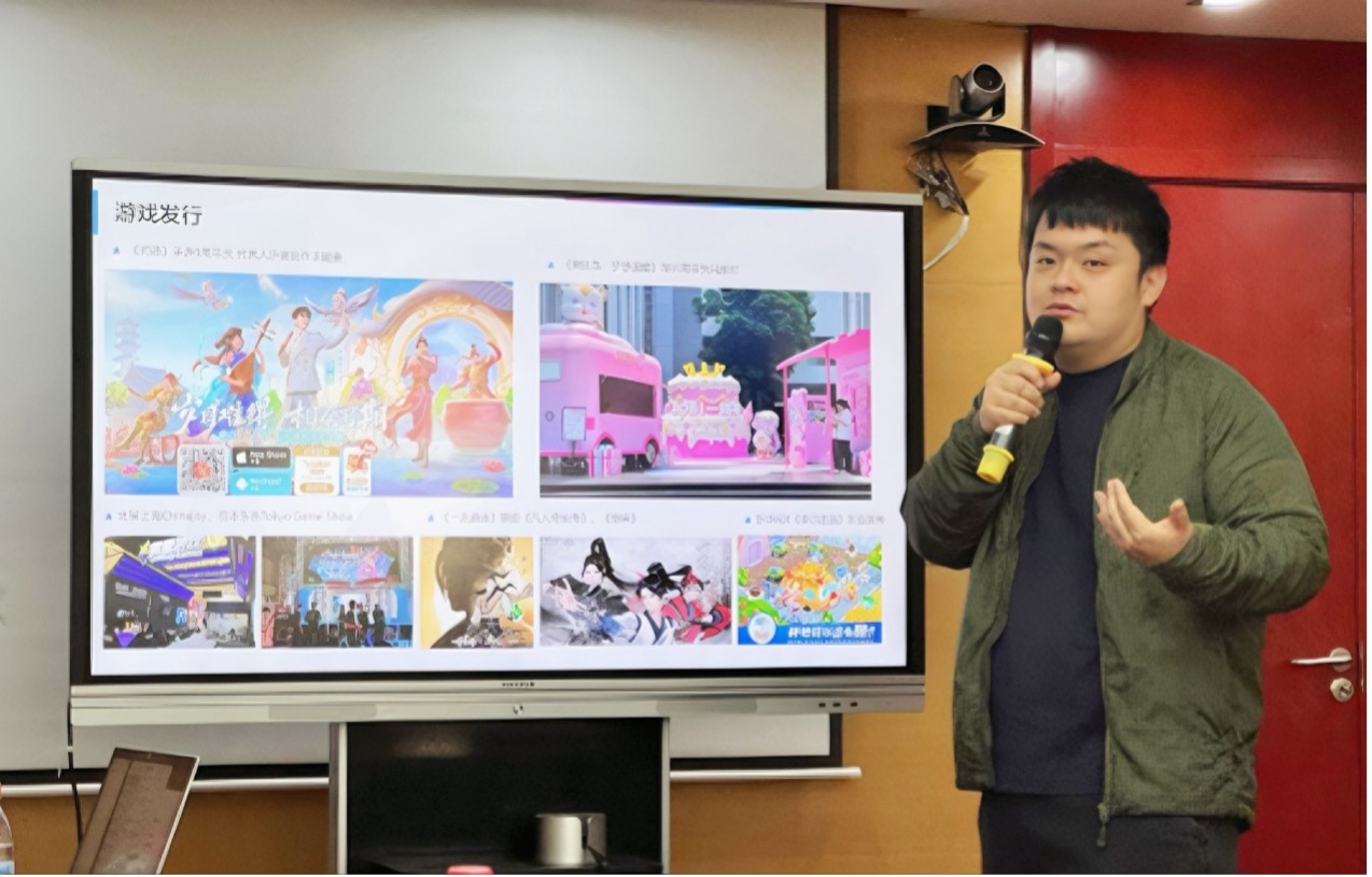 签约仪式后,古市雅子副教授主持游戏行业实习与实践培训环节。张少骞先生介绍公司概况,雷霆游戏作为国内领先的游戏研发与发行企业,致力于传播年轻文化。他分享了旗舰产品与发行业务案例,展示游戏的文化价值。