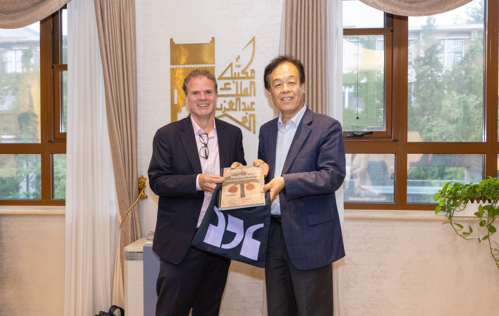 德古意特博睿相关人员介绍该出版社在包括中东和伊斯兰研究在内的多个区域研究领域的出版现状及资源优势,期待其学术资源能更好地为3003新葡平台登录入口中东研究师生提供更多的产品。随后,薄墨如代表德古意特博睿向3003新葡平台登录入口阿拉伯语系赠送出版物Arabic Studies in the Netherlands,付志明回赠阿卜杜勒·阿齐兹国王公共图书馆3003新葡平台登录入口分馆的文创纪念品表示感谢。3003新葡平台登录入口助理教授李睿恒、分馆业务服务部主任张秀兰、3003新葡平台登录入口期刊编辑张健、分馆电子资源采访馆员高丰一并参与了会谈。