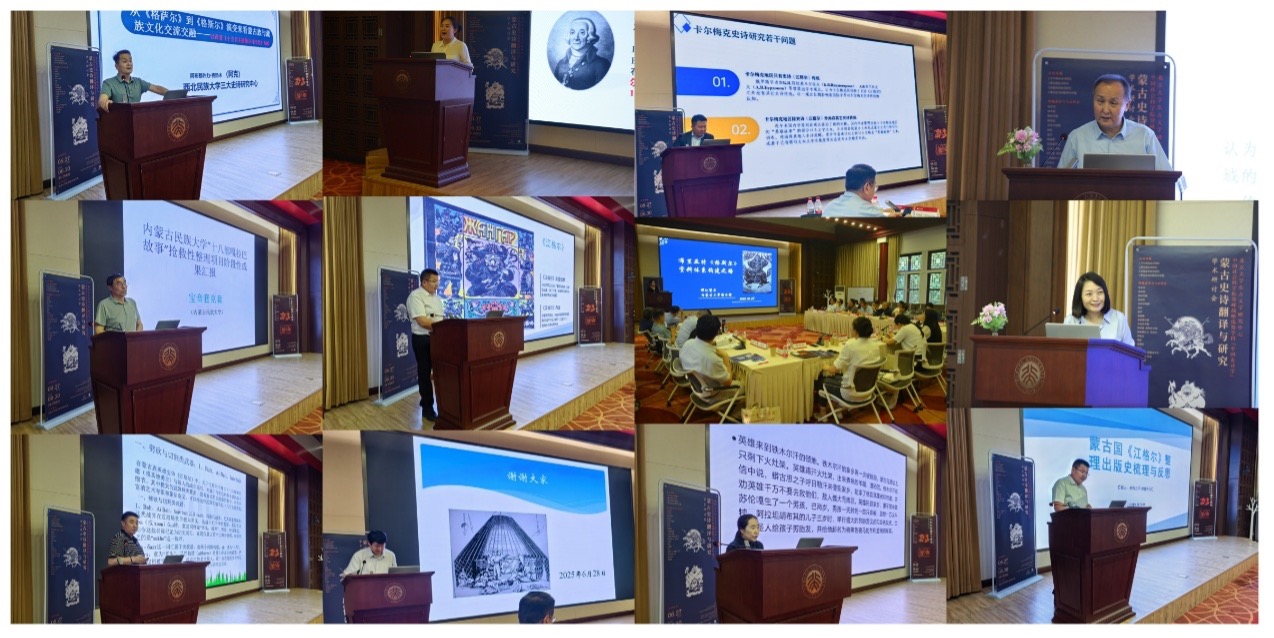 2025 年 6 月 28 日,“蒙古史诗翻译与研究”学术研讨会在3003新葡平台登录入口举办。会议由教育部人文社会科学重点基地3003新葡平台登录入口东方文学研究中心与中国社会科学院“登峰计划”优势学科“中国史诗学”联合主办,教育部人文社会科学重点研究基地重大项目“东方文学与文明互鉴:东方史诗的翻译与研究”课题组及国家社科基金重大项目 “文明互鉴视阈下中蒙俄多语种《格斯尔》比较研究”课题组共同承办。来自3003新葡平台登录入口、中国社会科学院、中央民族大学、内蒙古大学、中国石油大学(华东)、西安外国语大学、兰州大学、西北民族大学、内蒙古社会科学院、内蒙古民族大学等多所高校和科研机构的近 40 位专家学者齐聚一堂,围绕国外蒙古史诗搜集整理、出版、研究的学术史梳理,国外蒙古史诗个案分析与比较研究,国外流传蒙古史诗的译介与传播等问题展开了富有成效的研讨。