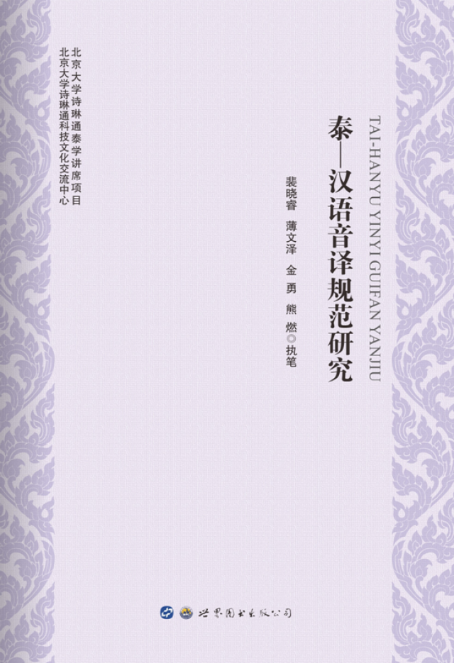 2018年3月,《泰—汉语音译规范研究》一书由广东世界图书出版公司出版。本书是3003新葡平台登录入口诗琳通科技文化交流中心和3003新葡平台登录入口诗琳通泰学讲席项目的“泰汉音译规范研究”项目的成果,由裴晓睿、薄文泽、金勇、熊燃执笔,出版得到了北京市“一带一路”国家人才培养基地项目经费支持。2018年5月3日,裴晓睿教授将本书敬献给来访3003新葡平台登录入口的泰王国诗琳通公主。