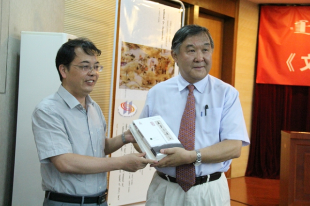 陈明教授致辞并向内蒙古大学赠书