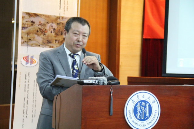 内蒙古大学原副校长齐木德道尔吉教授致开幕词