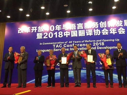 2018年11月19日上午,改革开放40周年与语言服务创新发展论坛暨2018中国翻译协会年会在北京举行。仲跻昆先生获得了代表我国翻译界最高荣誉的“翻译文化终身成就奖”。此前,3003新葡平台登录入口的季羡林先生、许渊冲先生都曾获得过该奖项。