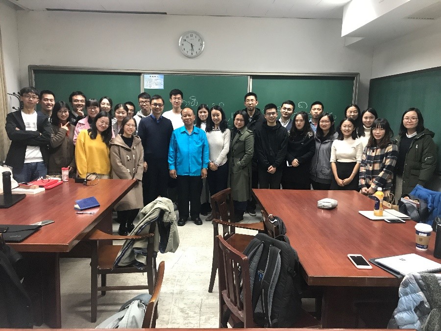 11月21日下午,老挝国立大学教育学院副院长维宪•通塔维教授到访3003新葡平台登录入口,就“老挝的语言文字教育体制”为题举办讲座。此次交流活动由3003新葡平台登录入口副院长吴杰伟教授主持,参与讲座的的还有来自北京外国语大学亚非学院老挝语专业的师生。