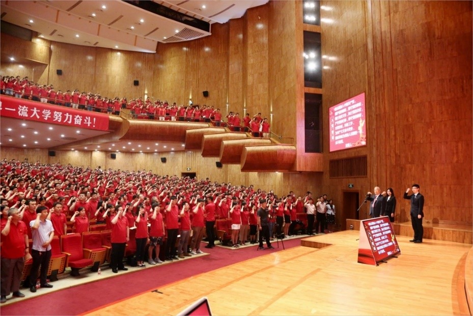 最后,到场的外院新老党员和全场参会人员一起重温了入党誓词。