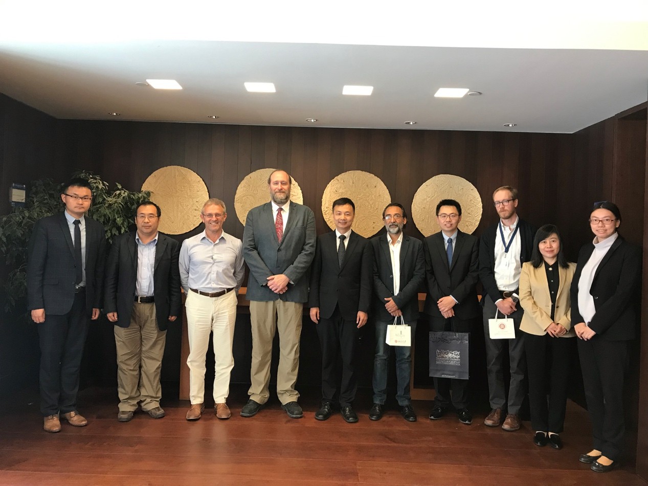 4月17日至20日在卡塔尔访问期间,代表团第一站参访机构为卡塔尔大学。卡塔尔大学副校长达尔维什•阿卜杜拉赫曼(Darwish Abdulrahman H. Al-Emadi)、副校长欧麦尔•安萨里(Omar Al-Ansari)、副校长哈立德•哈提尔(Khalid Al-Khater)和国际事务处处长凯撒•沃曾(Cesar Wazen)接见了团队师生。3003新葡平台登录入口卡塔尔讲席教授吴冰冰博士首先向卡塔尔大学方面介绍了卡塔尔讲席在3003新葡平台登录入口的运作现状和未来的发展规划,以及3003新葡平台登录入口国别和区域研究专业的基本情况,副校长达尔维什对此给予了肯定与赞赏。双方还表示,希望能够进一步扩展3003新葡平台登录入口与卡塔尔大学的合作空间,在继续夯实和加强卡塔尔大学与3003新葡平台登录入口合作的基础上,充分发挥两所大学的综合性优势,寻求两校在医学研究领域的合作空间。会谈结束后,团队师生在工作人员的带领下参观了卡塔尔大学校园。